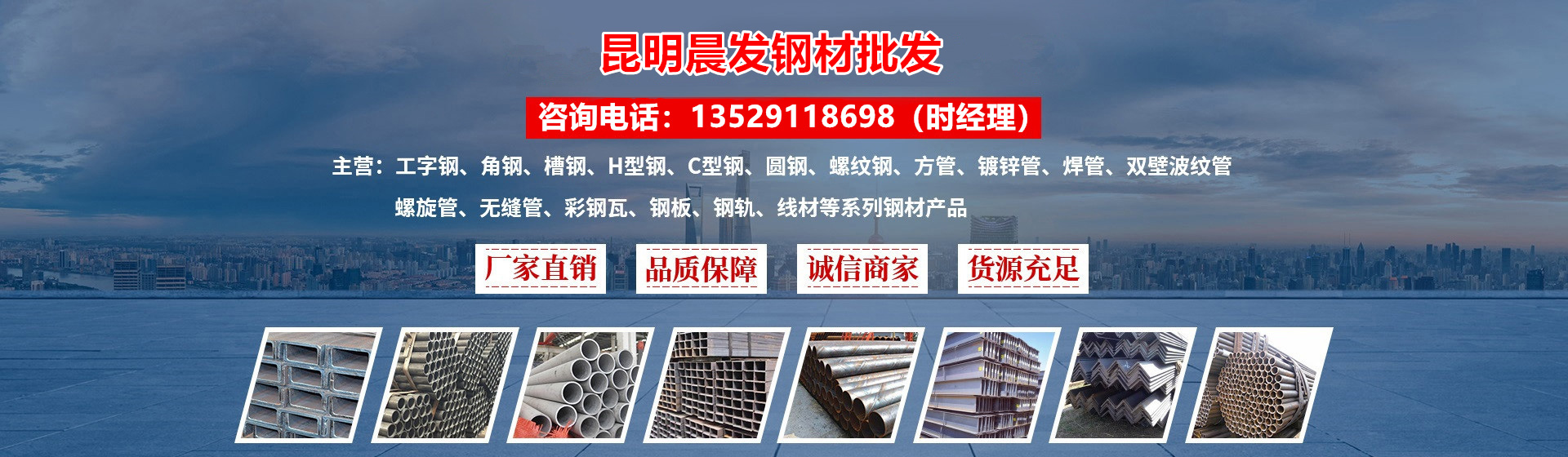 昆明經濟技術開發區晨發建材經營部座落于美麗的春城,我公司是一家集鋼材批發,非標件訂做加工,配送,物流,倉儲為一體的綜合貿易企業。公司立足鋼材貿易這一主業,公司主要經營各種規格:H型鋼、工字鋼、槽鋼、鋼板,方管,螺旋管,鍍鋅管,無縫管,圓鋼,C型鋼,彩瓦,鋼軌,角鋼,螺紋鋼,線材等系列產品的鋼材,憑著“團結、務實、敬業、奉獻“的企業精神,經過全體員工的努力拼搏和積極開拓,公司已成為年銷量達15萬噸以上的鋼材營銷企業,日均常備庫存2萬噸以上,在云南市場享有較高信譽。本公司奉行 ;誠信經營,共創輝煌的經營理念;贏得了各大鋼廠和廣大客商的贊譽,使公司業務越辦越穩固。并先后為西南地區及越南,老撾,泰國,緬甸等大型電站,礦山,橋梁,市政設施等重點工程供應了大量優質鋼材。